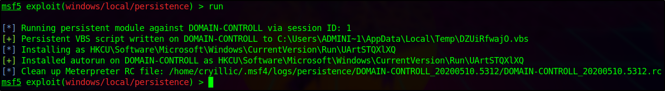 Here you can see the session die however the second we run the handler again we get a meterpreter shell back thanks to the persistence service.